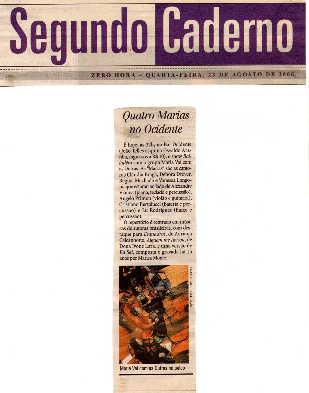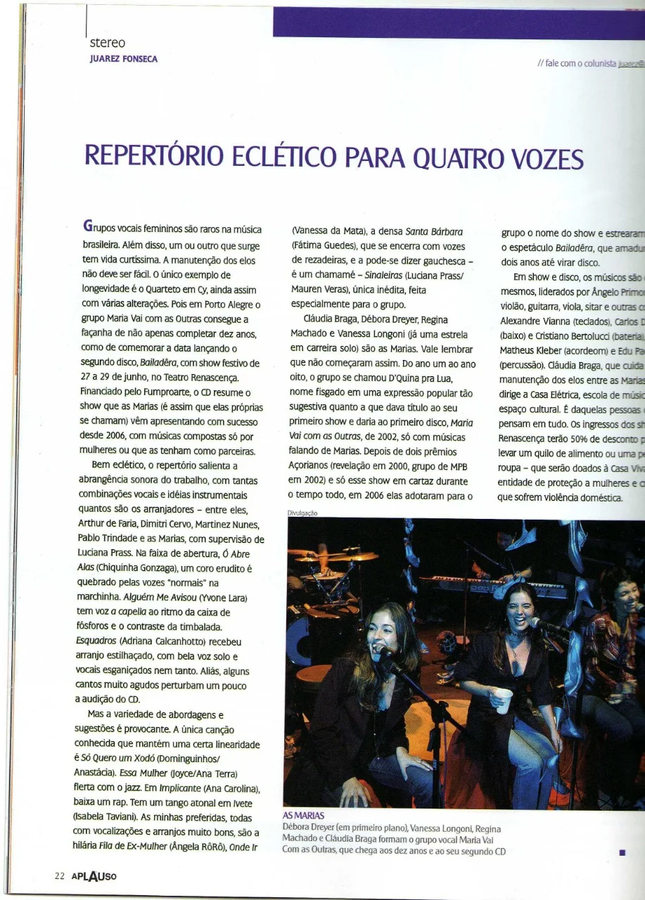 Cantoras: Cláudia Braga, Débora Dreyer, Regina Machado e Vanessa Longoni
